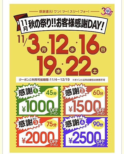 ※クーポン利用可能期間 11/4~12/19