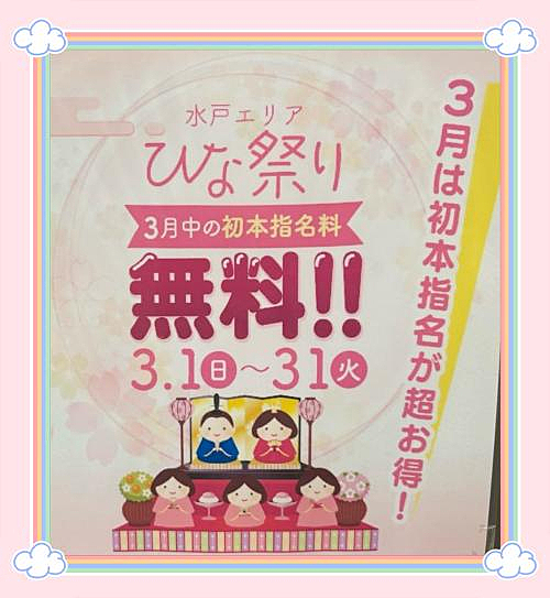 3月中の初指名料金が無料に!!