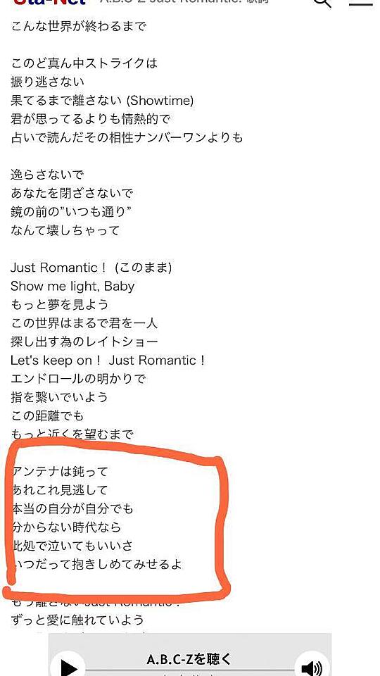 わたしが大好きな推しのグループa.b.c-zさんのすごく好きな歌詞。