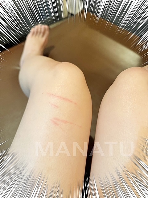 ヒリヒリするなぁと思ったら太ももが傷だらけ、、、