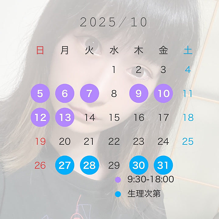 9月は生理が長い間続いており、急遽の出勤取りやめになってしまい、誠に大変申し訳ございませんでした🫠