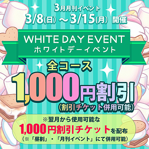 3/8(日)~3/15(日)【ホワイトデー】月刊イベント開催中♪