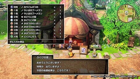 ドラクエ2リメイク 2025年11月09日 08:41 今回も福引あります前回と違い目押しスロットではなくガチの抽選特等の黄金の爪は呪われているアイテムなので売却一等のやいばのブーメランは序盤の雑魚をなぎ倒すのに役立ちますストーリー進めると福引所も増えてゴールドカードとかふしぎなボレロが景品に出てきます( ´∀`)