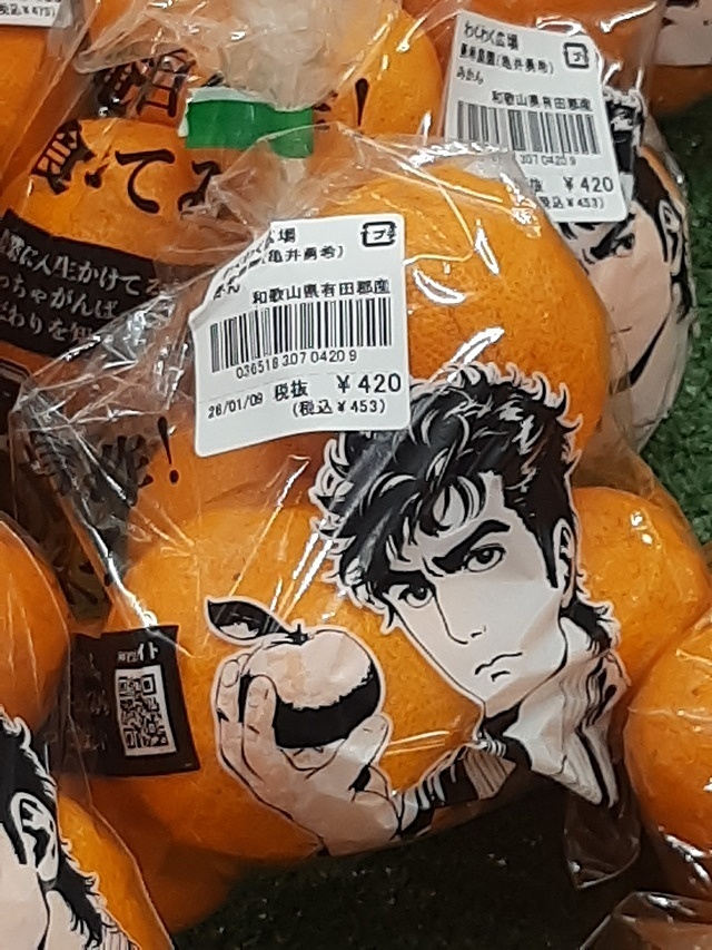 みかん 2026年01月12日 08:35 アトレの物産展?的なところでこんなみかんが売ってましたケンシロウ…?と思いましたが多分違う「俺の自信作食べてみ!」とセリフ付き笑和歌山にはこんなかっこいいみかん農家さんがいるのかと期待( ´∀`)
