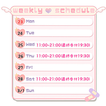 - 10:00~23:00(電話受付21:00迄)