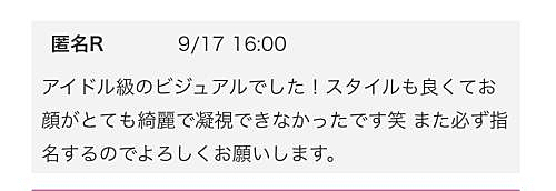 ありがとうございます! 2025年09月21日 11:12 Rくん応援コメントありがとうございます また来るって言ってくれて、次の日にちゃんと来てくれてとても嬉しかったよ 一緒にいてとても落ち着くし本当に素敵です。 アイドル級って嬉しいな また来てくださいね〜!待ってます