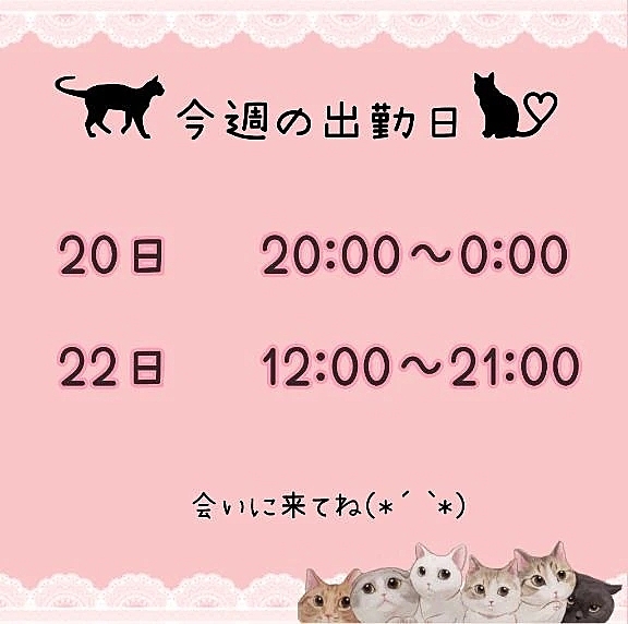 今週の出勤が確定したのでお知らせです!