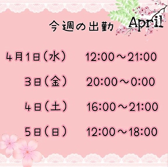さてさて。今週の出勤日が確定したのでお知らせです💁♀️