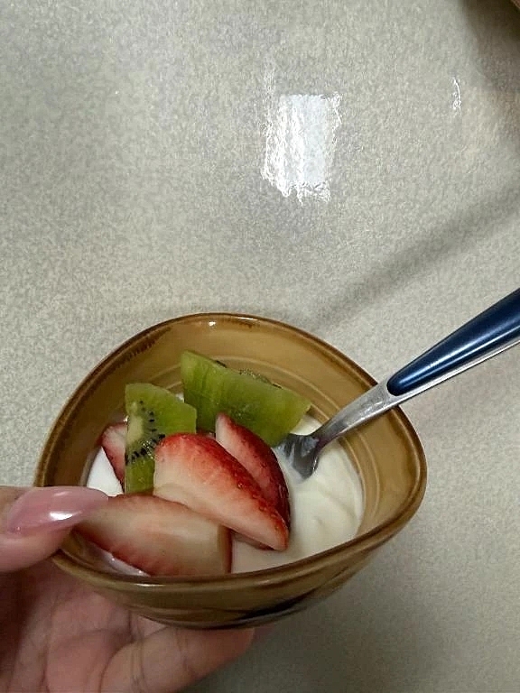 朝はヨーグルトとフルーツ♥
