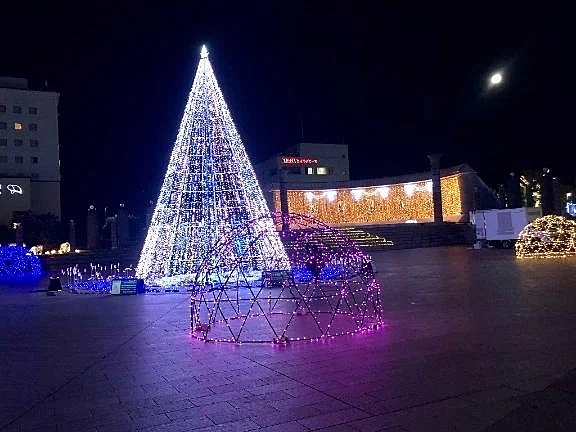 さやか今日たまたまイルミネーションを見に行っててツリー🎄の斜め上に月がたまたま写ってたの☺️