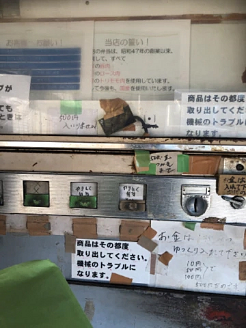 ドキドキしながら自販機にお金を入れたら出てきた緑の紙に包まれたお弁当!温かい!