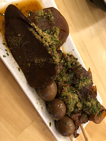 あと静岡おでんも初めて食べましたが色はめちゃめちゃ黒いけど味はいつも食べてるおでんと変わらない味。黒はんぺんも食べましたが鯵?の味がするような🙆♀️薄いけど美味しかったです💞