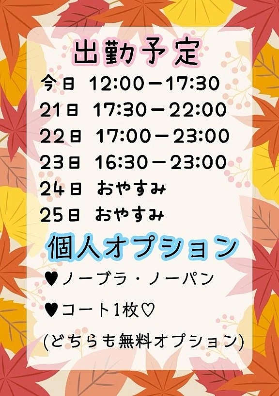 今週末の出勤予定です