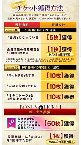 投票券の獲得期間は9月1日〜10月16日まで‼️