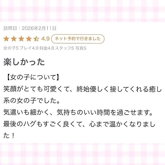💌口コミthx💌 2026年02月12日 18:58 S様口コミありがとう 笑顔が可愛いって照れる…そのお言葉めちゃくちゃ自信に繋がりますリピート確定もうれししゅぎる…//本当にありがとうまた会えるの楽しみに待ってます