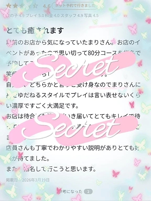 💌【お礼写メ日記】 2026年03月24日 16:51 口コミありがとうございます🥰前から気になっててくれて会いに来てくれてめちゃめちゃ嬉しかったです🫶💕受け身が好きな方はまさに相性バッチリですね🥳✨本当にありがとう⸜(*´꒳`*)⸝