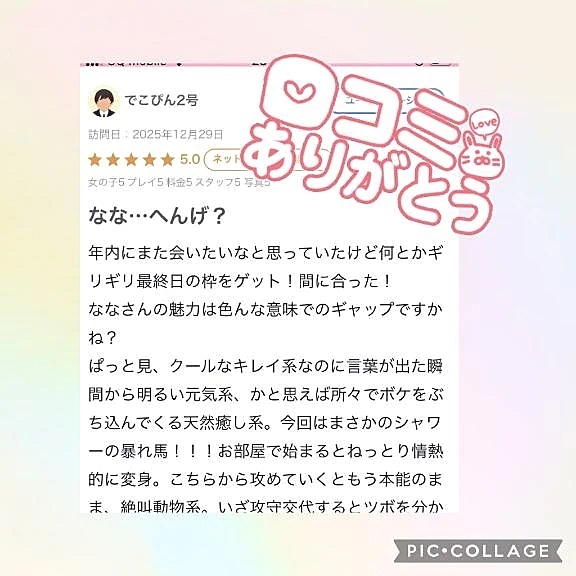 【お礼写メ日記】 2025年12月31日 23:31 いつも遊びに来てくださって口コミも書いて頂きありがとうございますまさかの暴れ馬が、、、シャワーだけなのか😆笑今年最後の最後で〜やらかしました(*≧∀≦*)今年も楽しいお時間ありがとうございましたまた来年もよろしくお願いしますなな