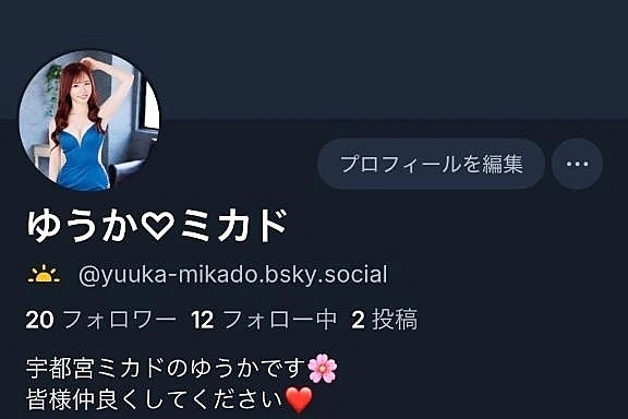 Bluesky始めました♡ 2026年01月08日 09:41 Bluesky始めましたXがあまりにも凍結されるので…何がいけないのかもよく分かりませんということでBluesky教えてもらって始めてみましたXとほぼ変わらない感じです知らない方も多いと思いますが登録してゆうかを見つけて欲しいな @yuuka-mikado.bsky.social