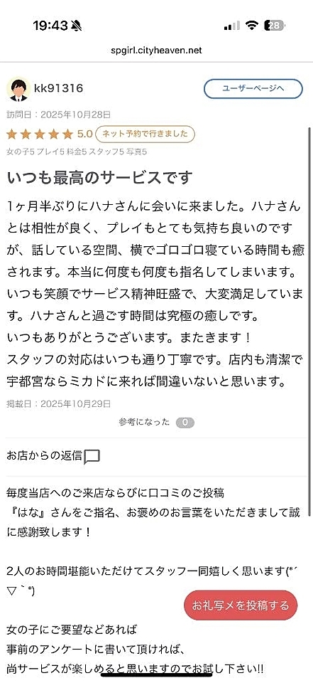 【お礼写メ日記】