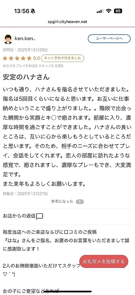 【お礼写メ日記】