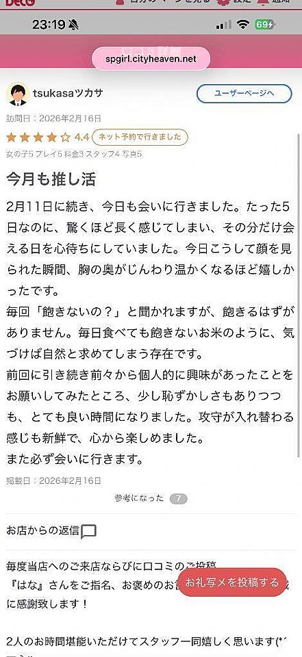 【お礼写メ日記】