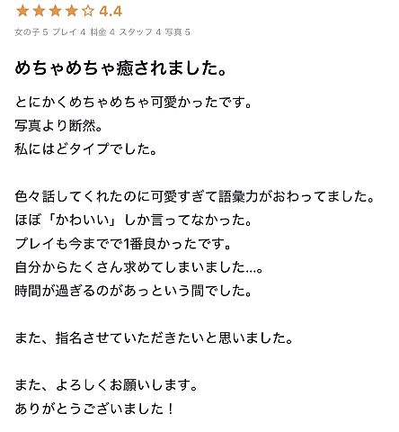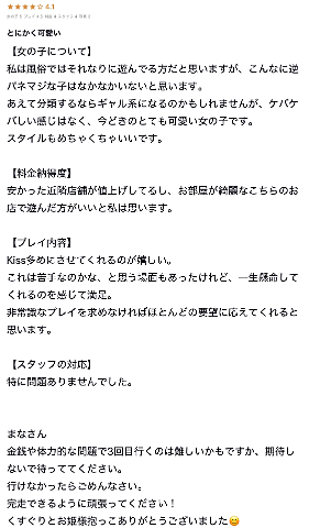 参考に? 2026年02月02日 19:03 前にいたお店でもらった口コミたち?少しですが載せておきます?気になってるお兄様にもっと気になって貰えますように??クチコミは全部大事にスクショ保存しておくことにしてます?まな?女の子ページへ