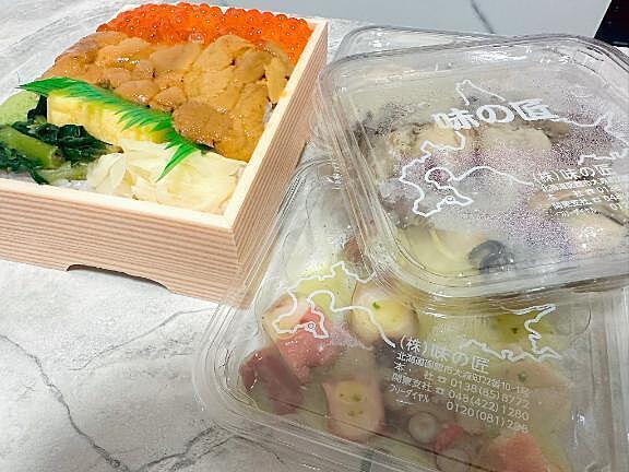 お母さんと海鮮弁当などを買って