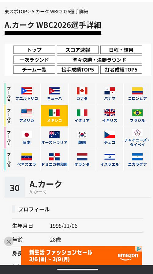 あすかイチオシの打ったボールいつも見えないカーク選手はメキシコで出場するって