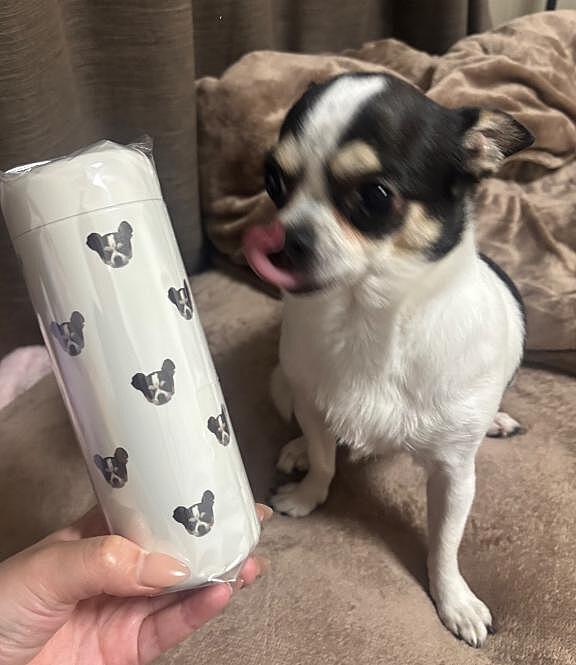 ちなみにこの画像は帰ってきたら家に届いていたうちのわんわんの顔がプリントされてるボトルです??