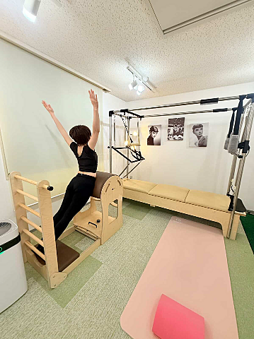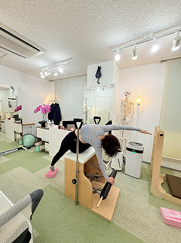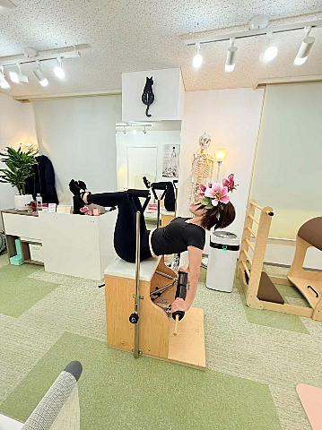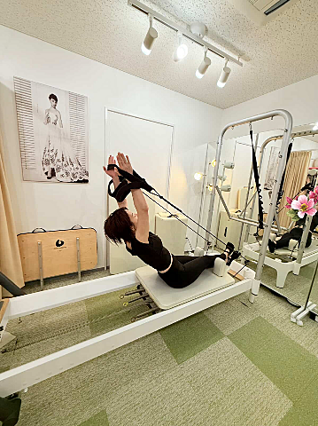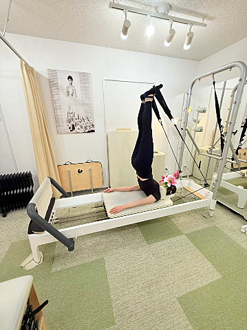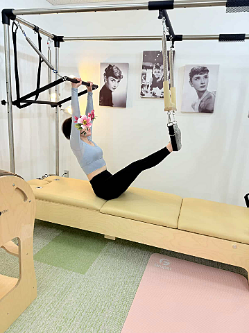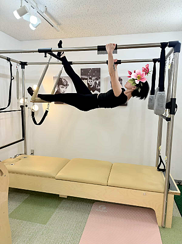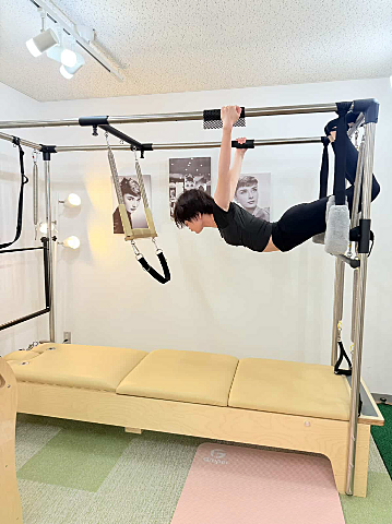 リフォーマーと同様のものもたくさん出来ますが、かなりアクロバットな全身運動も多いです?