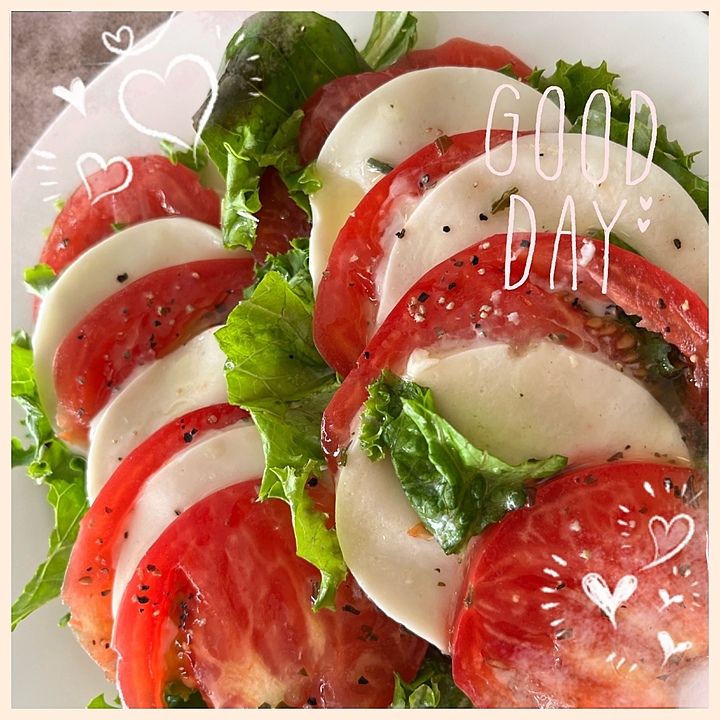カプレーゼしようとしたら、バジルが少ししかなかったのよね。自分で食べるだけだからまぁいいか。