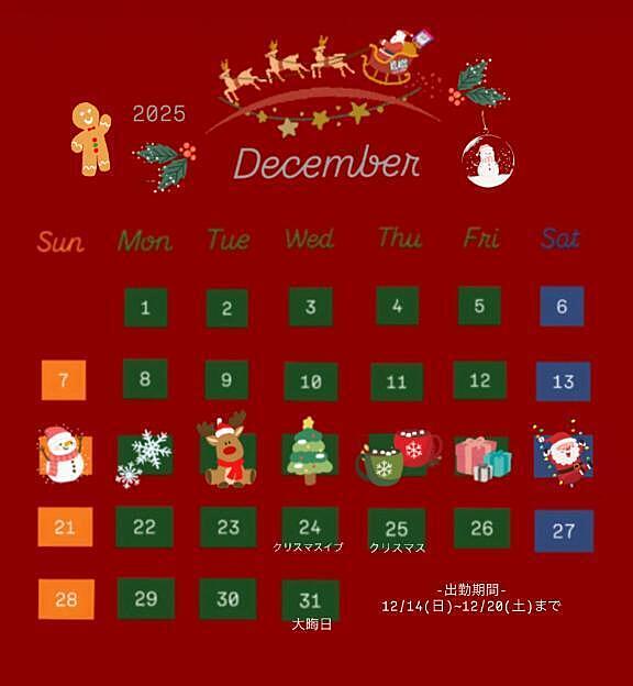 12/14(日)〜12/20(土)までの1週間