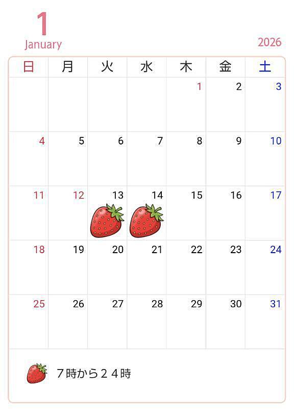 ?13日14日出勤確定? 2026年01月05日 09:13 ??1月上旬出勤確定??13日7時から24時14日7時から24時出勤人数などで出勤時間変更になる可能性があります2日前くらいまでに予約していただけると確実にその時間には居ます??会いに来れる方お待ちしてます??女の子ページへ