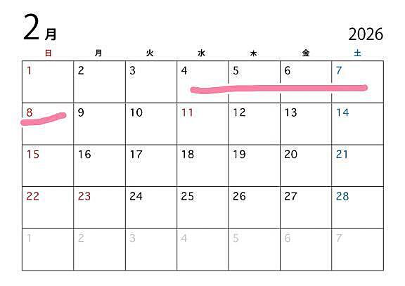 2/4〜2/8までの5日間出勤させていただくことになりました♪