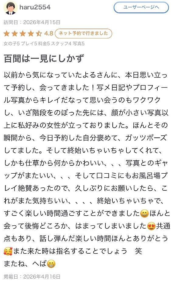 Hさん素敵なクチコミ書いてくれて