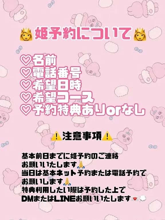 姫予約希望の場合はこちらのアカウントに