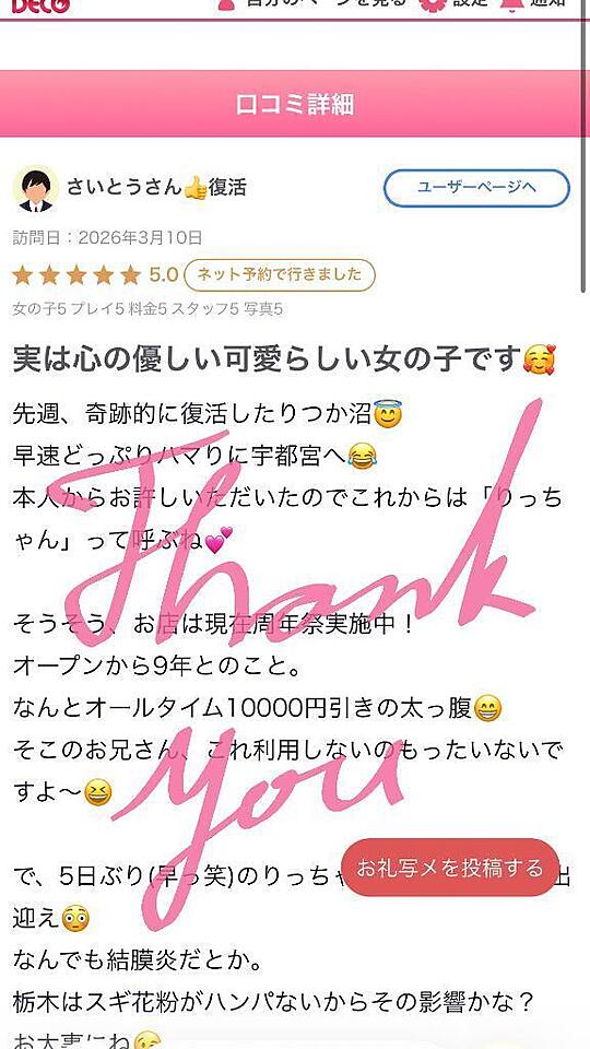【お礼写メ日記】