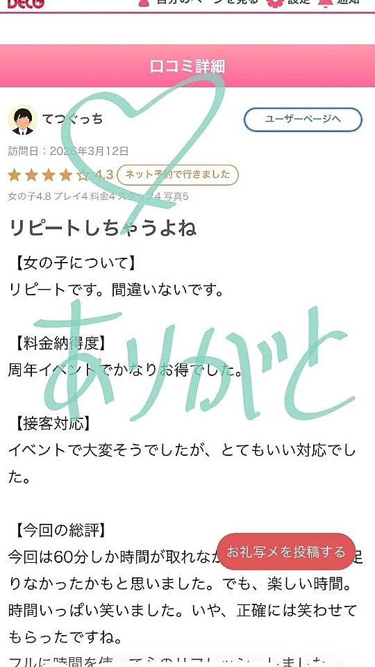 【お礼写メ日記】