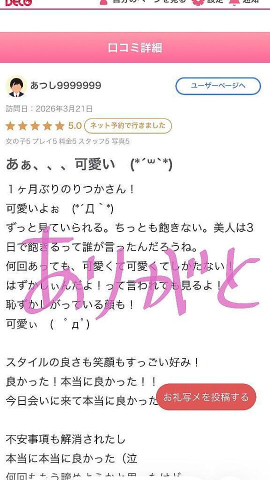 【お礼写メ日記】
