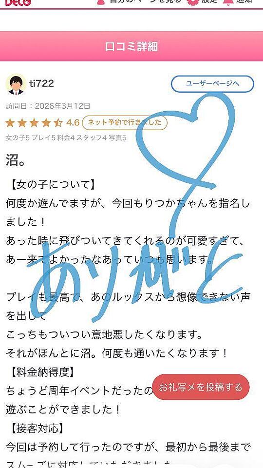 【お礼写メ日記】