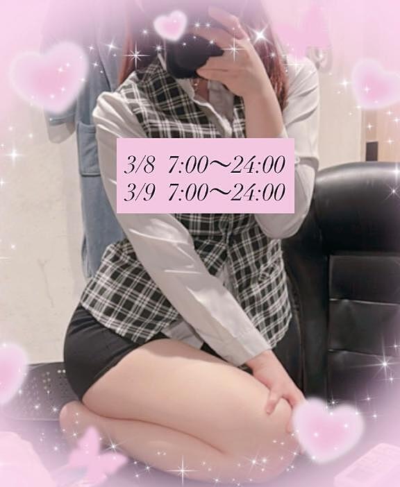明日もいます︎🎀🎶 2026年03月07日 23:08 ありがたいことに少しずつ予約も貰って残りわずかになってきました🥺 会いに来てくれたら嬉しいです︎💕︎3/8(日) 7:00〜24:003/9 (月) 7:00〜24:00↑↑↑↑↑います🙋♀️