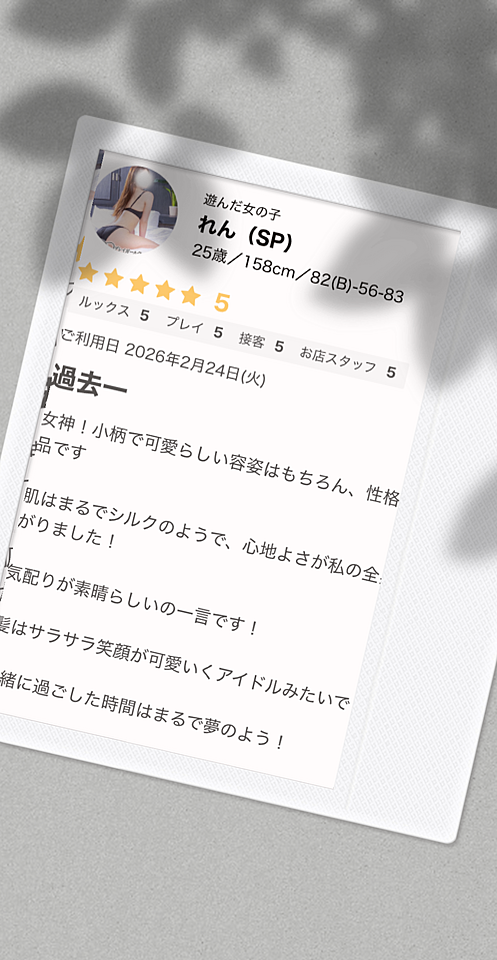 口コミ💌 2026年03月03日 23:53 口コミありがとうございます❤️ か、か、過去1😭😭💖 もう褒めちぎってくれるじゃないですか🥹れんはとっても嬉しいですよ☺️とろけてしまいます💖😌 お兄様にとって女神的存在でこれからもいれますように🥰🥰 またお会いできるのを楽しみにしていますね😘 れん