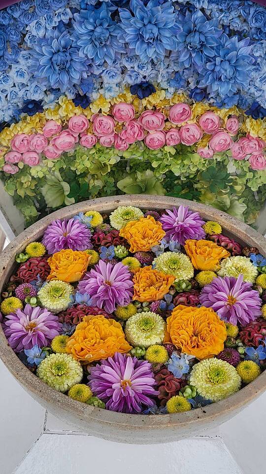 おはようございます(=^ェ^=)🌹 2025年10月24日 06:08 今日も🌼花手水🌼のお写真です。 今日も秋晴れ☀️もう洗濯機回してるけどカーテンも洗いたい。この時期は色々 掃除したくなる。 寒すぎないから色々したくなっちゃいます。 もうあと一週間ちょっとで10月も終わり。11月は本格的に寒くなっちゃうんでしょうね。 皆さま風邪などひかれませんように。 今日もお仕事の皆さまもお休みの皆さまも 良い週末をお過ごし下さいませ(=^ェ^=)🌼