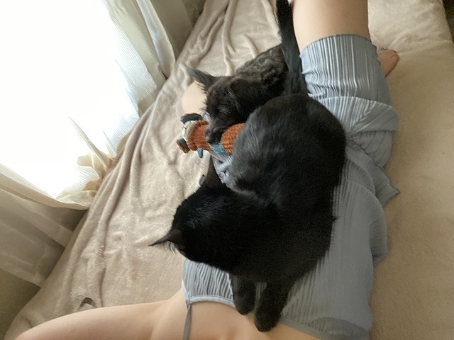 おはよう🫧🍌 2026年01月12日 06:00 今日も今日とて とても寒いですが… よろしくお願いします🥺💓 これは前に撮った 犬様ヌコ様とまどろんでる所です☺️ 休日はいつもこんな感じでダラダラゴロゴロしとります笑
