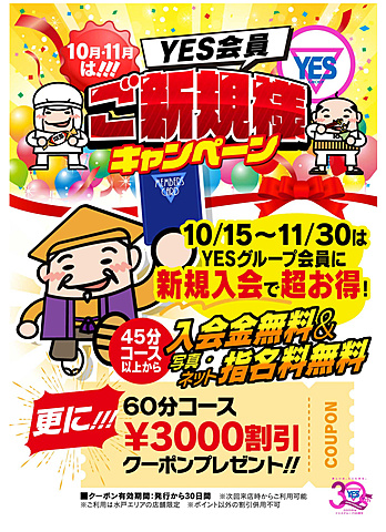 新規入会の方、入会金と指名料(45分以上)無料で他にクーポンも出ます♪