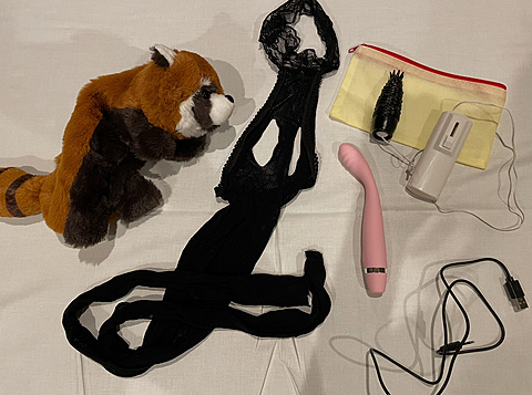 ノンアルで乾杯しながらお土産を開けてみると……アライグマの可愛いペンケースから出てきたのは……ちょっとぉ〜おいおい、エッチなグッズがたくさん