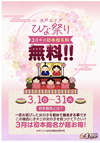 そんでもって今日から1ヶ月間、初本指名料無料キャンペーンです
