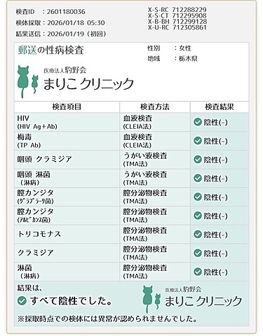 性病検査の結果でました😊