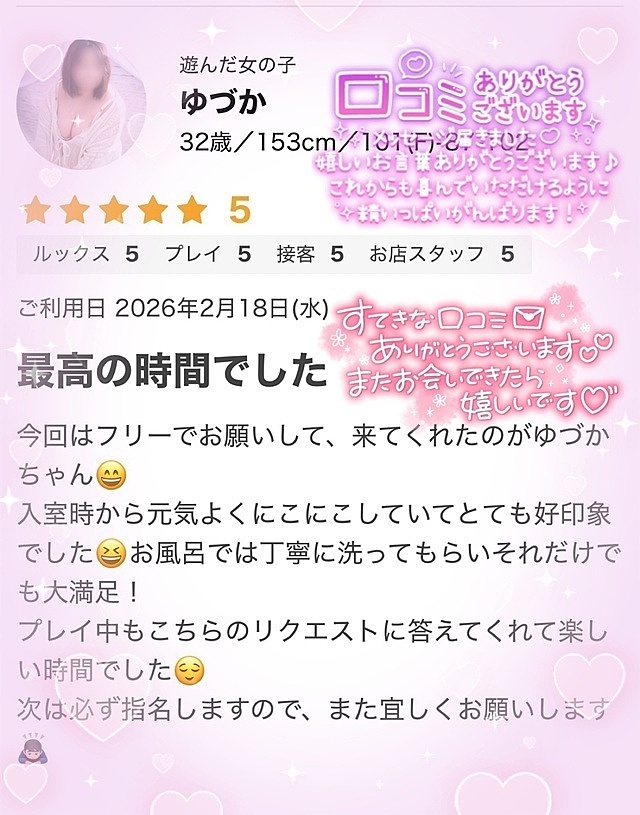 初めましてでフリーでしたけど、Nsさんはとても優しかったし紳士的でニコニコしてくれてたのでゆづかも自然と笑顔になれてましたよ🤭💕