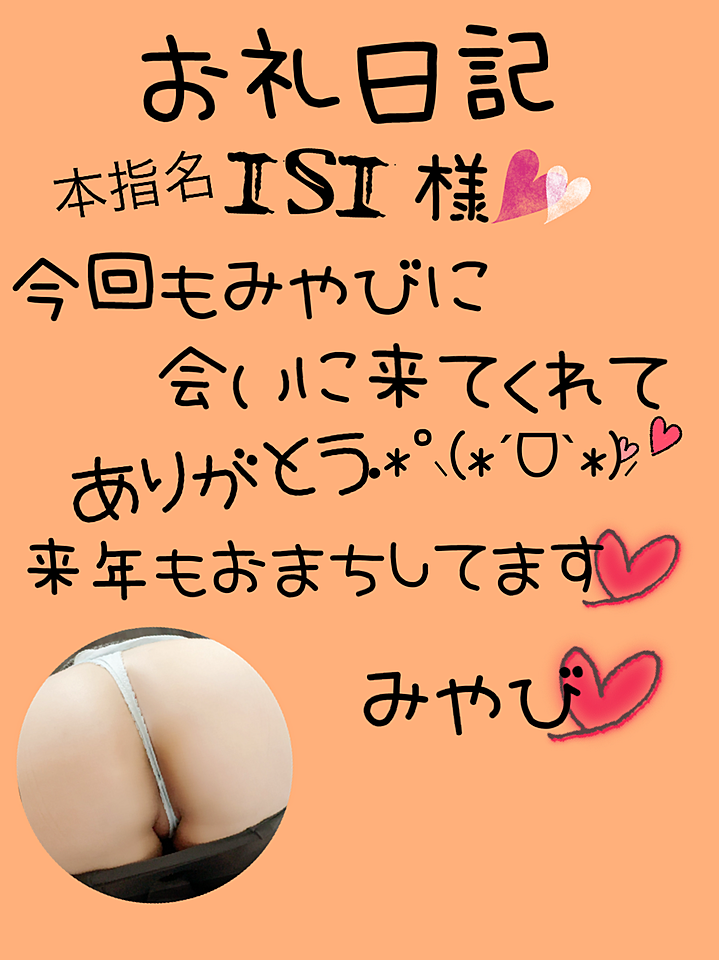 お礼日記☆12月29日(日)☆ 2025年12月29日 21:30 Isi様*¨*. 今回もみやびに会いに来てくれてありがと〜! 年内最後だったし、会いに来てもらえると思ってなかったからすごく嬉しかったよ〜 また来年もよろしくお願いします☆ みやび